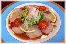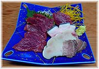| 1月25日(木) 魚の美味しいまち 朝早くに金沢を出て、今日も能登で取材を続ける。夢一輪館、横山鮮魚店、下平鮮魚店、かじ旅館と個性的な店が多い。横山鮮魚店は小木の商店街にある魚屋さんだが、旅のお客様も多いようだ。観光の途中によられたお客さんからの注文で遠方に魚をきれいにさばき、すぐ食べられるようにしたものを送っておられます。能登でとれたふぐにも力を入れておられます。かじ旅館は柳田にあるが、天然の八目うなぎや雉子料理が珍しい。山菜やきのこもご主人自らがとってこられたものを季節には出しておられます。宇出津の民宿ふわに泊めていただいて、夕食は久しぶりに「風来坊」に行く。きれいに改装されていて、カウンターが広くすごしやすくなっていました。珍しく生のくじらがあるというので、食べさせていただきました。 | ![]() くじらの盛り合わせ |