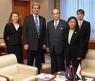 | 2月2日(金) ラトヴィア大使 在日ラトヴィア大使、中谷芙二子さん一行を一日フォローする。最初は県庁で知事にお会いいただく。事前に資料提供をさせていただいたように、世界遺産についての話を中心にしていただく。もちろん、ラトヴィアや首都リガの現状と今後の可能性について大使から説明がありました。次に北國新聞社で社長と会っていただく。ここでも世界遺産に関するお話しと、JAPAN TENTについてのお話をしていただきました。昼食は東山の蛍屋で楽しむ。2時間近く、懇談させていただく。一番贅沢に大使と話させていただいたのは私であったようだ。食事の後、ひかり蔵で黄金の蔵や金箔の移しも見学。次に、21世紀美術館、兼六園、金沢城と見学。それぞれ学芸員と所長に説明いただく。最後は金沢商工会議所で会頭さんたちと会見。経済交流の可能性について意見交換。充実した表敬訪問となったと喜んでいただきました。表敬活動にご協力いただいた皆さん、本当にありがとうございました。今後も交流が続けられそうで何よりです。 | ![]() ラトヴィア大使一行と知事 |