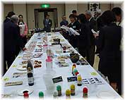| 2月20日(火) 特産品懇談会 富山県商工会連合会の特産品懇談会があった。毎年恒例の事業であるが、特産品開発事業者と流通業の方々が一堂に会し、具体的な商品プレゼンテーションを行うというものです。富山県内の特産品商談会であり、アドバイザーも介在することで、商品改良へのヒントも得ていただこうというものです。商工会連合会の事業であるが、商工会議所地域の事業者も参加されているところが新しい。県内企業の営業支援になるのであれば、組織を超えて行っているところが素晴らしい。流通事業者さんも地元百貨店の大和や空港や高速、駅の売店や宿泊・温泉施設等からも参加いただいており、魅力的な商品はすぐ取り扱いが始まるようです。もちろん、最後にお願いしたことであるが、個別にも相互に行き来していただき、より魅力的な商品開発を進め、事業の発展を目指していただきたいものです。途中段階でもいいから、ここで売って欲しいという流通業者さんのところに相談に行くことだ。 | ![]() 懇談会の様子 |