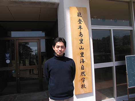 | 4月24日(火) 人がいて、暮らしがあって 能登の魅力を伝えるために、何をすればよいかと思案している。とりあえず、これまでに撮りためてきた写真の中から選んで紹介していこうと思う。他のページと重複することが多いかもしれませんが、ご勘弁を。まずは半島の先端・珠洲から2枚。廃校になった小泊小学校に金沢大学が設置した「能登半島里山里海自然学校」。そこで、常駐研究員として活動している赤石大輔さん。好青年なので、地元の方々からも好かれています。その前の家の庭先での仕事風景がもう一枚。わかめ干しの作業をされていました。例年のことなのでしょうが、よそ者には、珍しい風景に見えたので、写真を撮らさせていただきました。
