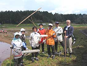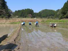 | 4月30日(月) 能登で田植え 能登半島・七尾の大呑で田植え体験。地域づくりコーディネータ−仲間である濱さんの田んぼで体験させていただく。田植機で植えた後、補植する。田植え機は便利なものであるが、抜けがあったり、1本だけということもある。端はどうしても手で植えないといけない。それで、結局人手もいるということである。のどかな田園風景が広がり、鳥のさえずりが心地よい空間でした。終わった後は、氷見のマイアミの温泉で汗を流し、夕方から美味しい魚や山菜などの御馳走をいただきながら慰労の宴。途中、能登に遊びに来て下さった八尾の田代さん御夫妻にも寄っていただき、一緒に会食。楽しい夜でした。詳しくは次のブログをご覧下さい。