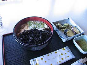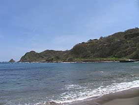 | 4月27日(金) 能登半島の先端では 能登半島の先端に行く。木の浦海岸にある二三味珈琲では良い香りがしていました。試飲を止めたので、直接訪ねてくるお客さんは少なくなったとのこと。隣の家には鯉のぼりが泳ぎ、背景に広がる森は緑の色がついてきています。さらに輪島側に行くと七つ島が見えるようになるところに、つばき茶屋(0768-86-2059)がある。そこで海藻入りうどんをいただく。お客さんがほとんど来ない日が続いているようで、サービスで山菜の天ぷらまでつけていただきました。店の中から七つ島が見える贅沢な立地です。