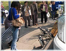 | 4月21日(土) 水族館で癒しを 能登島の皆さんが門前の被災者たちを招待 して下さいました。26名の人たちが参加。水族館では、アシカやイルカのショーを見学したり、新たにできたトンネル水槽で頭上を泳ぐイルカやペンギンを楽しんだり、ペンギンさんのお散歩と一緒に歩いたりと楽しんでいただけましたかな。民宿の人たちが作ってくれた手作りの食事を味わっていただき、さらに、ひょこり温泉でゆっくりしていただきました。一方、東京から「のとだらぼちITOKO会」のメンバーら13人が能登に遊びに来てくださいました。手仕事屋で昼食をとっていただき、総持寺を拝観。富来に移り、道の駅を見学、風舍で休憩のつもりが、ワインや料理も味わっていただきました。能登でお金を使うぞ!という意気込みの感じられる皆さんでした。輪島に泊まり、こちらのメンバーとも交流をしていただきます。