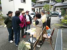 | 10月21日(日) 能美ほっこりまつり2 快晴のもと、能美ほっこりまつりに再び行く。地区のあちこちでいろんな体験や販売を行っておられました。入口で環境協力金200円を支払って地区内に。ぶらぶら歩いてみて回るにはちょうどよい規模です。11戸40人程とのことで、コミュニティとしてはいろいろ大変でしょうが、皆さんの意欲が高いようだ。能美の里山ファン倶楽部の皆さんも手伝っていましたので、スタッフだけでも相当な数に上っていました。秋の休日を楽しむにはちょうどよい催しでした。来場されたお客さんたちも体験したり、食べたり、買い物をしたりと、楽しんでいただけたのではないか。