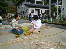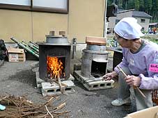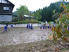 | 10月20日(土) 能美ほっこりまつり 能美市の山奥・仏大寺町で行われている「能美ほっこりまつり」の様子を見に行く。途中から雨が降り出したので、夜のキャンドルナイトは明日に延期されましたが、他のプログラムは行われていました。ガイドハイクは大勢の人が参加されていましたし、歴史探訪もこじんまりと行われていましたのでついてまわりました。根上中学校の子どもたちによるキャンドルナイトの準備活動は水田に素足で入って、竹筒を立てるというものでした。寒い日でしたが、みんな元気が良かった。いい体験かもしれないですね。ほっこりまつりは21日がメインでたくさんのプログラムが用意されています。 | ![]() 水田に竹筒を立てる中学生たち |