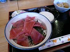 | 10月10日(水) いなか家 珠洲まで出かけ、すえひろにお邪魔した。末政ご夫妻に「いなか家」(珠洲市上戸町寺社ろ64-1 TEL 0768-82-6320 営業は15:00まで)という店に連れていってもらった。すえひろの米を使っていただいているとのこと。本日のおすすめとして黒板に書いてあった「刺身丼」を試させていただく。コーヒーもついて880円は妥当なお値段かもしれない。地元の人を対象にするなら現状のメニューでもよいが、旅の人も獲得するのであれば、地域性の感じられるメニューも開発して欲しいものです。すえひろの米を使っていることも明記していただくと少しでも付加価値が高まるはず。場所は珠洲の中心街に入る手前の陸橋の手前の左側です。 | ![]() いなか家の刺身丼 |