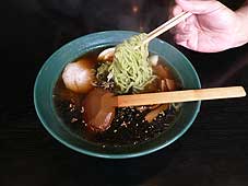 | 10月11日(木) 古海魯肴(こみろな) 朝から能登町に出かけた。午前中は役場で打ち合わせ。昼は宇出津に戻り、古海魯肴(こみろな)で緑のらーめんをいただく。商品開発に熱心な山本さんのお店で、何度かお邪魔しているが、このメニューは食べたことが無かった。たコロッケ、イカ餃子、深層水らーめんなど、珍しいメニューが目白押しです。能登町で取水している海洋深層水も使われています。「イカコロ男爵」もご馳走になったが、イカのゲソと大豆が入っていて食べやすいコロッケです。さつまいもで作った「イカコロさっちゃん」もあります。山本さんは町会議員であり、観光協会長でもあるが、率先垂範いいモデルを作っています。場所は数馬酒造の近くです。 | ![]() 緑のらーめん |