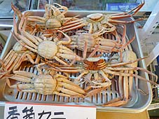 | 11月7日(水) 加賀の店めぐり 午後は「まちづくり人材育成塾」の2回目があった。午後2時から、参加メンバーの店を見て回る。山中温泉の商店からスタートし、山代、分校、永井、大聖寺と10数店舗を見学したが、メンバーにとって初めて知ったというところも多く、よい出会いでした。お互いを知る事が、連携、ネットワークの出発点だと考えているので、ちょうどよい機会となった。店や工房で迎えていただき、お話をしていただくだけでも、今後につながる可能性もありそうです。何度か、このような会を重ねるだけでも、確実に連携した事業が動き出しそうな感じでした。最後は山中温泉文化会館で気付いたこと、今後へのアイデアを出し合っていただきました。現場を見た上でのアイデアの方がリアリティアが感じられるものですね。 | ![]() 店頭にあった香箱カニ |