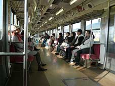 | 11月25日(日) 帰り 朝7時には朝食をいただく。シジミのみそ汁が出雲らしい。松浦さんに出雲市駅まで送っていただくが、定刻に出発した特急が濃霧のため、ゆっくり運転であった。岡山駅には20分遅れで到着。予約してあった新幹線は行った後で、最初にやってきた「のぞみ」に乗り、立ちながら京都まで行く。京都駅で急いで乗り換えたら、予約してあった「サンダーバード」には間に合いました。いずれの列車も混んでいて、余計に疲れた帰り道でした。