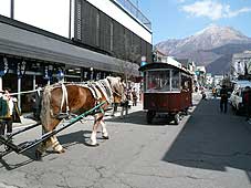 3月1日(土) 辻馬車開き | ![]() 駅前を出て行く辻馬車 |