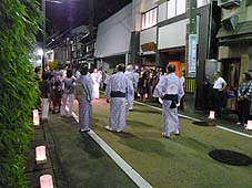 9月7日(日) 山中節道中流し | ![]() 湯の本町通りでの道中流し |