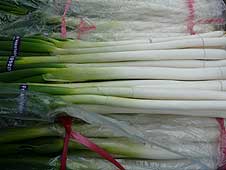 1月22日(木) 二・七の朝市 | ![]() 朝市で売られているりっぱなネギ |