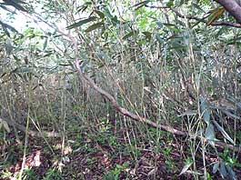 ![]() ネマガリダケが茂った様子 | ![]() ネマガリダケを刈って明るくなった森 |