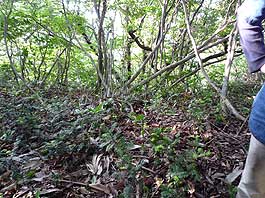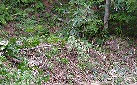6月29日(月) 森の整備 | ![]() 炭窯跡(右手の窪みが窯口) |