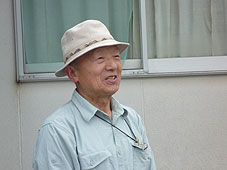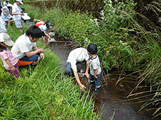 ![]() 川に入って生き物を探す | ![]() 水槽に入れて観察 | ![]() 谷口正成さん |