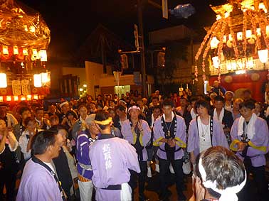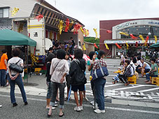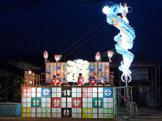 ![]() 長谷部まつりのトラックの荷台を使ったステージ | ![]() 南浜町の新たに作られた燈籠とステージ | ![]() 飯田町内各所に置かれた曳山 |
