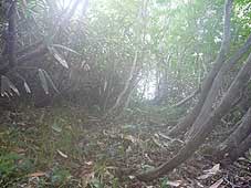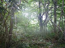 ![]() 竹が茂っている状態 | ![]() 竹を刈り、歩ける道をつける | ![]() 縁の部分の開けたポイント |