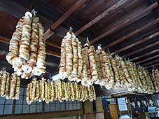 7月14日(火) 田鹿麩店 | ![]() 田鹿麩店の天井から吊された麩 |