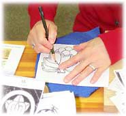 カーボン紙を使って、下絵を写す。