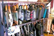 ![]() 着物の生地を活用した袋ものは、 見るのも楽しみ。