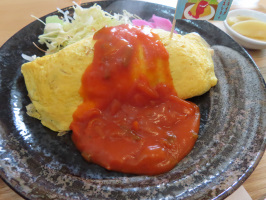 朝8時半には宝達志水町暮らし体験の家へ。移住体験者さんを伴い、宝達中学校近くの道路沿いで作業前の小早川さんに話をうかがう。しばらくして師匠の中村さんが到着され、天気が悪いので作業は中止となり、近くの松月堂さんで一緒にお話しをうかがうことに。中村さんは面白い経歴の方でした。自動車整備の仕事からケーキ屋で働くという転職をされていて、松月堂さんで10年以上働かれていたとのこと。ケーキとコーヒーをご馳走になりましたが、面白い話をいろいろうかがえてよい機会でした。その後、宝達集落、東間集落を案内し、宝達山に向かう道が通れそうだったので、行けるところまで行ってみた。頂上までの中間地点あたりまでは行けましたが、まとまった雪が残っているところでUターンして下界に。上田出の家を紹介して、クチノトマーケットでオムライスをいただく。午後1時には、ちりんにお邪魔し、西さん夫妻から話をうかがう。千里浜の道の駅で買い物をしていただいた後、なぎさドライブウェイを出浜まで走り、暮らし体験の家に戻り見送る。使用されたシーツ類を洗濯して、家に戻る。 | ![]() クチノトマーケットのオムライス |